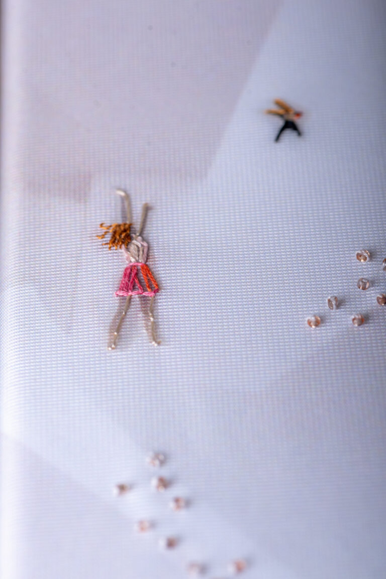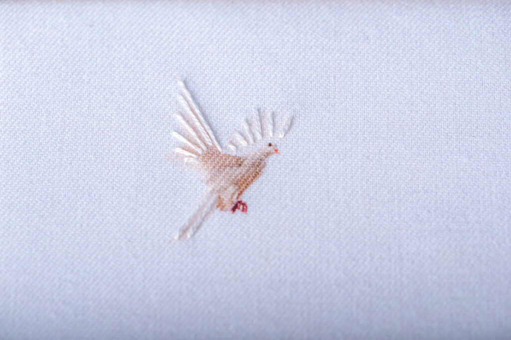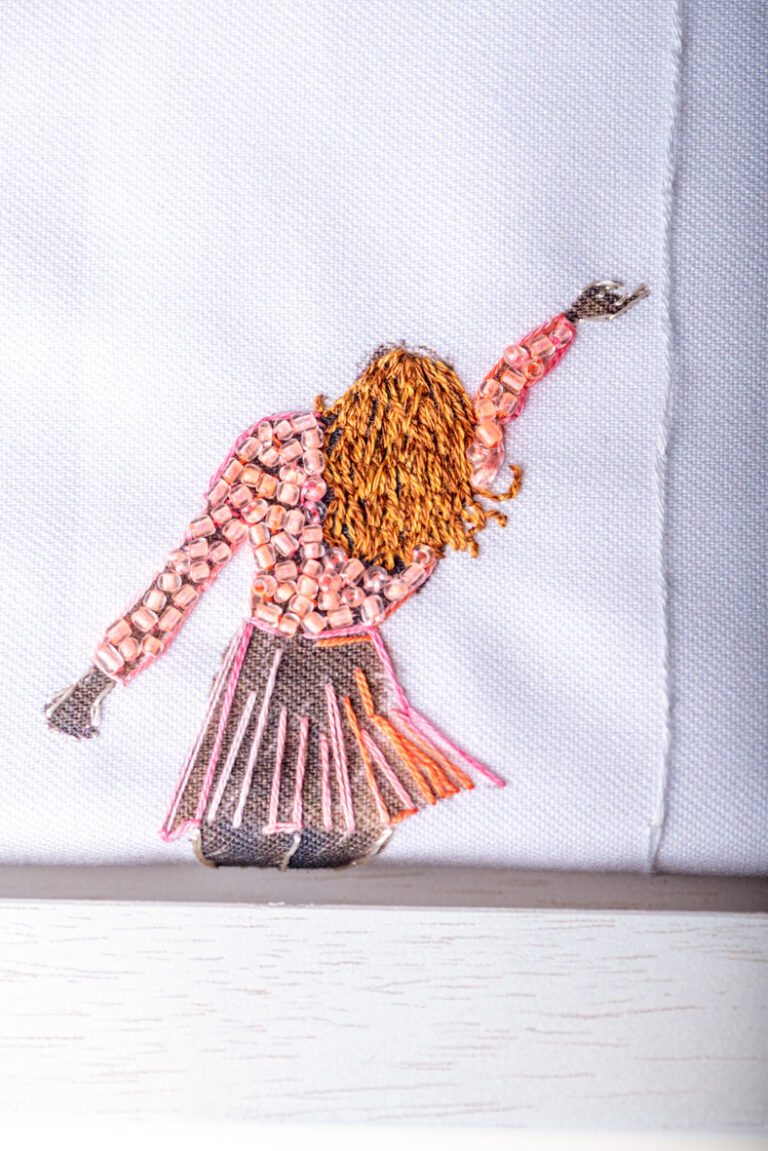 In het jurkje zijn twee belangrijke symbolische stukjes stof verwerkt.